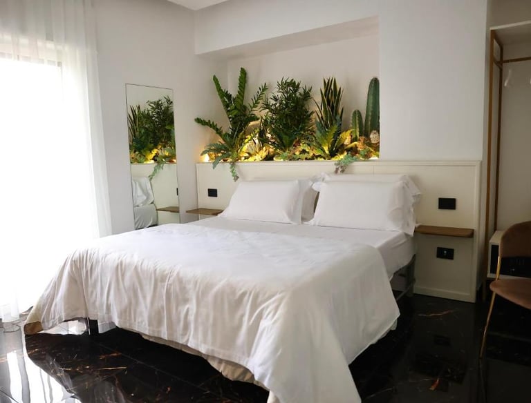 Le suite moderne, recentemente ristrutturate, offrono un'esperienza di lusso. Godetevi ampi spazi e comfort esclusivi, ideali per un soggiorno indimenticabile ad Aversa.